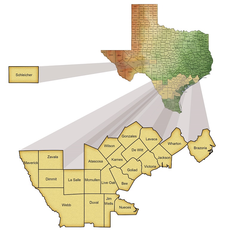 - Eagle Ford shale 2,500' - 12,500' Prolific shale formation spanning 15 counties in South Texas. Very low dry hole risk along with excellent daily production and reserve potential. This south Texas formation is also a target for some of the worlds largest oil companies such as Conoco, EOG, Exxon, BP. Etc. Horizontal drilling techniques and multistage stimulation procedures have made this formation one of the premier plays in the North America.